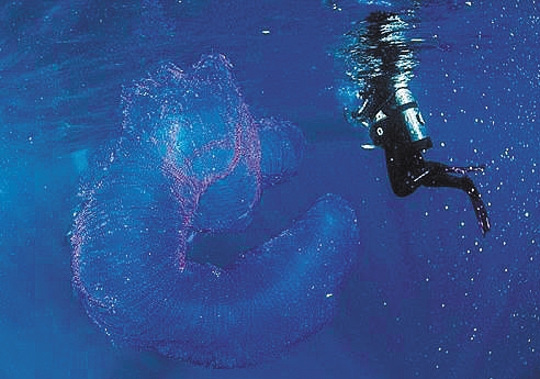 有潜水员在澳大利亚昆士兰州道格拉斯港海岸附近遭遇了一种很奇特的生物——它们看上去就像是一个巨大的圆筒形的泡泡,全身还泛着粉色和蓝色的光。潜水员甚至可以钻进它的体内,又毫发无损地从另一端钻了出来,看上去,这种生物一点危险性都没有。这种生物其实叫火体虫,是海鞘的神秘近亲,一种古老的海洋生物,它也不是一个单一的生物体,而是由上千个单独个体组成的,通常也被称为“海泡菜”或“海洋独角兽”。